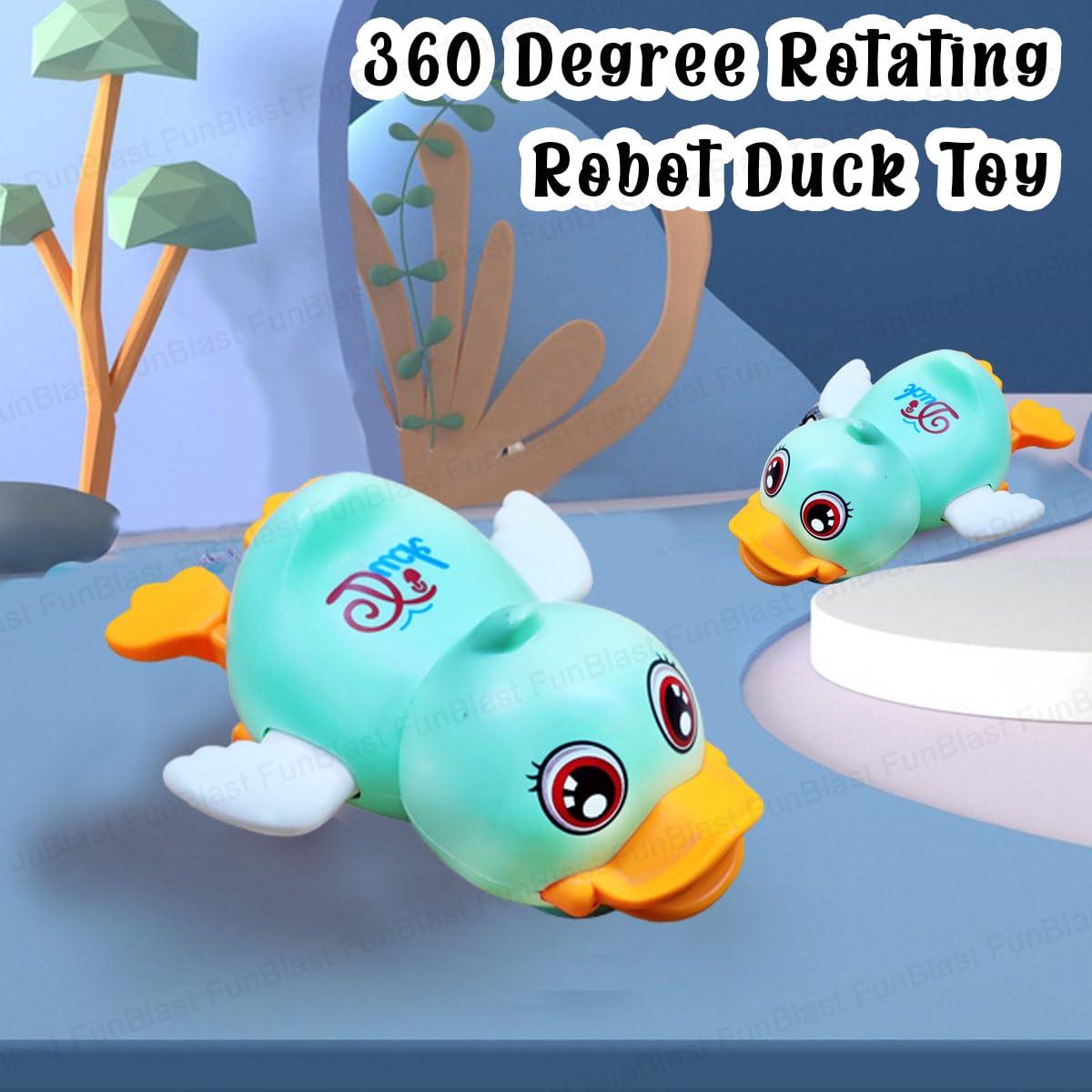 360 Degree Rotating Duck Toys - FunBlast transparent duck toy has a light and sound which makes more attractive sound toy & educational toy for kids. (Required 3 AA batteries; Not included with box), Dance Toy with Melodious Music - FunBlast dance duckling toy is designed with the flapping wings and legs up and down, with flash light and universal wheel., Safe and Durable Material - This dancing and swinging cartoon duck is made of high-quality ABS sturdy durable plastic materials and colorful realistic pattern. These effects keep toddlers involved in playing with the baby toy for hours., Develops Skills - It helps promote hand-eye coordination, sensory reception and motor skills. This robotic bee toy is made of nontoxic material and does not contain any sharp edges or corners, which ensures safe and harmless play., Best Gift Toy - Best Recommended for 36+ months children, Best Gift Toddlers Toy for Kids. Playing with these kinds of dancing robot toys will provide your child with hours of imaginative play.